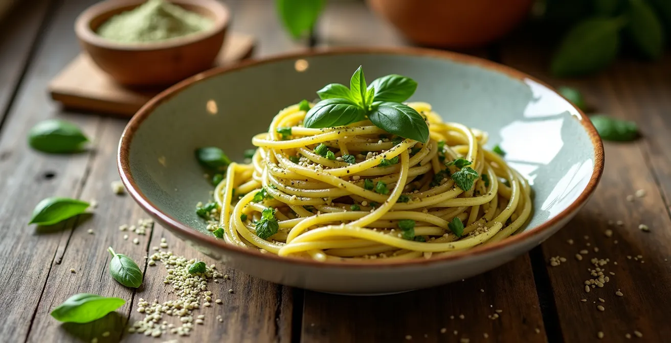 - L’approche synergique et harmonieuse : Le pesto est le meilleur allié. Le goût de noisette du chanvre se marie naturellement avec celui du basilic, des pignons de pin et du parmesan. L’huile d’olive du pesto aide également à l’absorption des nutriments. C’est l’accord le plus évident et le plus réussi.